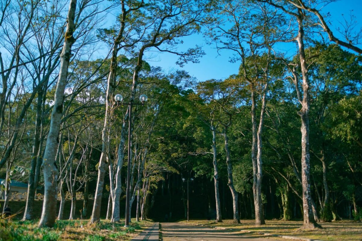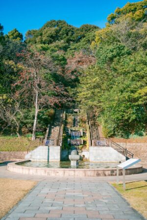 鹿児島市の指定文化財・慈眼寺跡周辺に広がる公園です。慈眼寺は飛鳥時代(約1400年前)に百済の名僧日羅によって開基されたと伝えられ、日羅がつくったとされる観音像が安置されていました。坊津の一乗院、志布志の宝満寺とともに薩摩の三ヶ寺と言われて有名でしたが、明治2年の廃仏毀釈により取り壊されてしまいました。