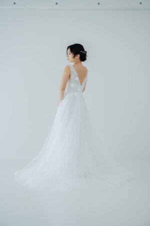 スカートはチュールでほど良い広がりが歩くたびに揺れ美しいです。