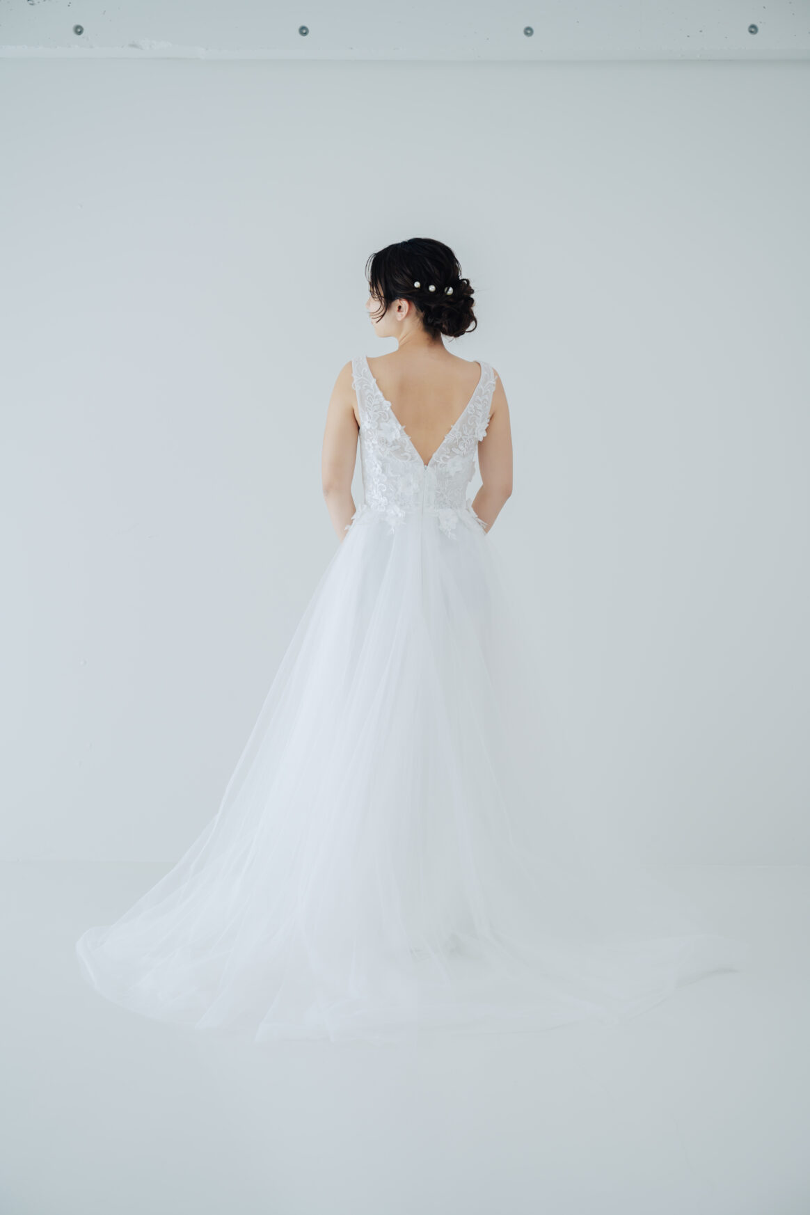 スカートはチュールでほど良い広がりが歩くたびに揺れ美しいです。