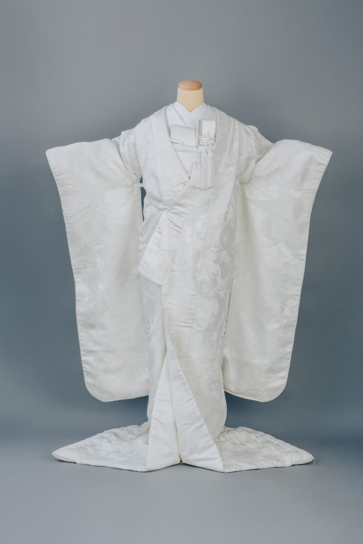 おふたりの幸せを祝う美しい鶴や梅、花車などが描かれた格調高く上品な白無垢です。