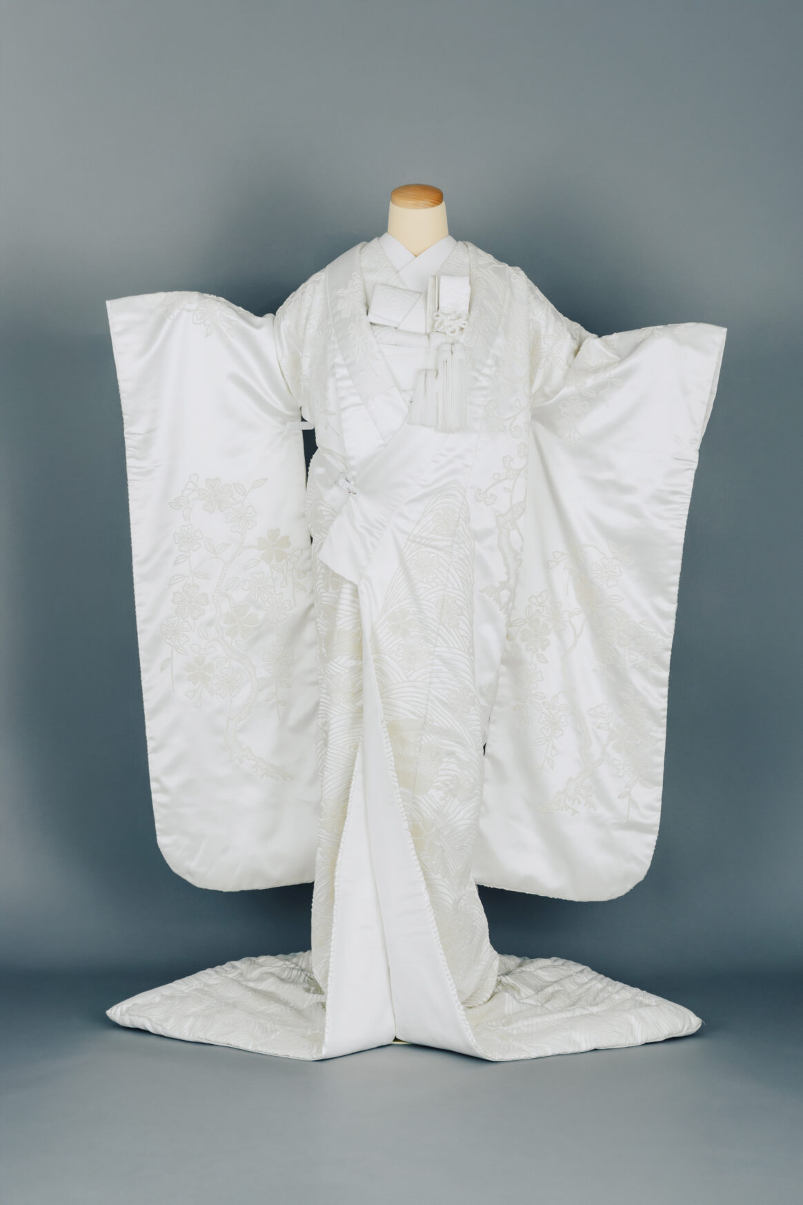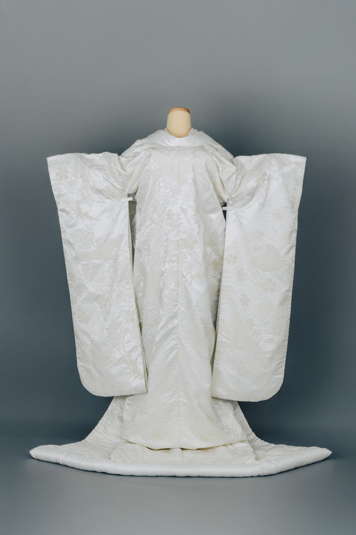 白色の生地に相良刺繡の刺繡が高級感を演出している白無垢です。鳳凰と花がさらに重厚感を与えてくれます。