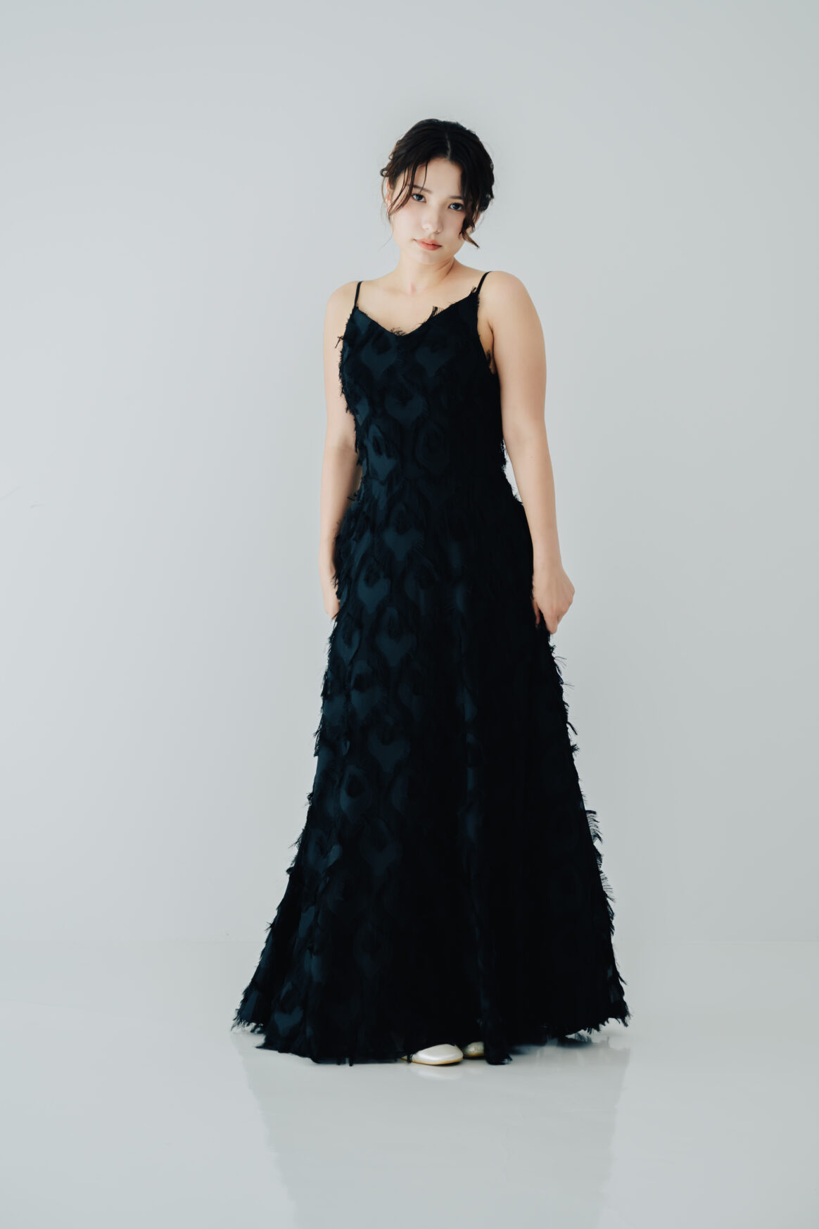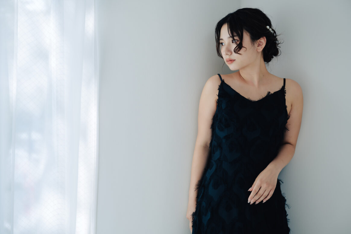 シンプルながらもエレガントさを感じるドレスです。