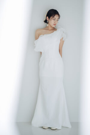 アシンメトリーのワンショルダードレスは、個性が生かせるハイレベルな雰囲気に!