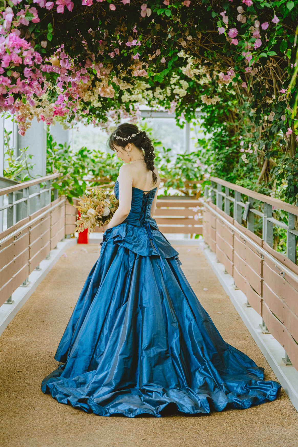 鮮やかなネイビープリンセスラインのカラードレスです。