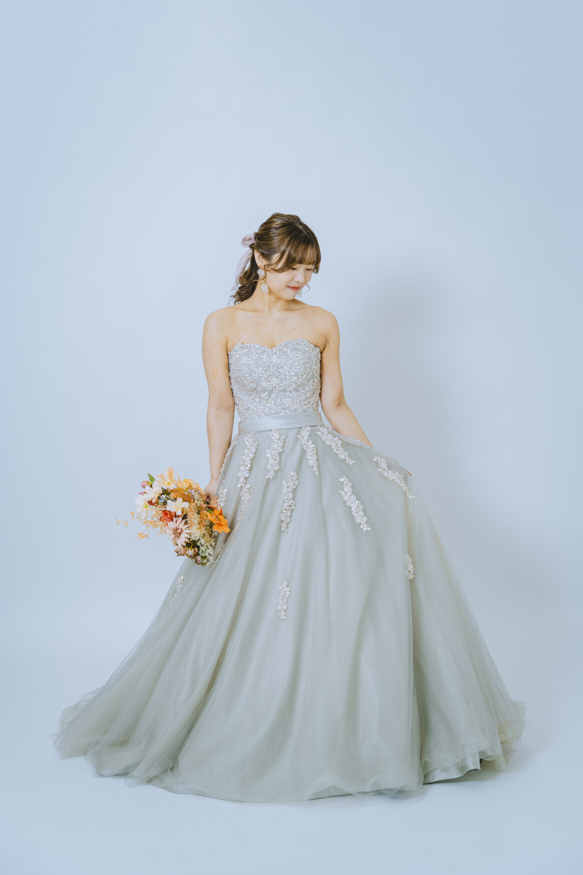 グレーのカラードレスです