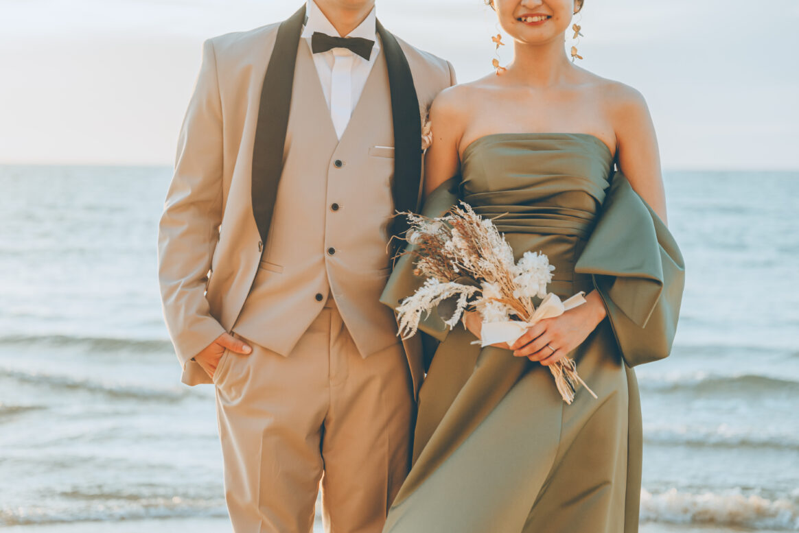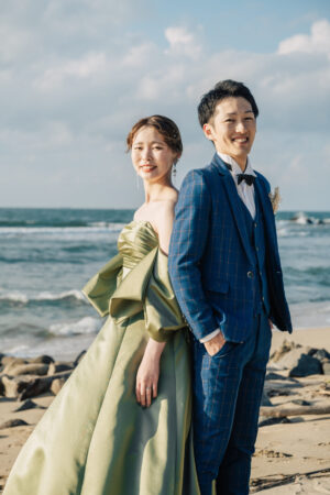 グリーン系のカラードレス。