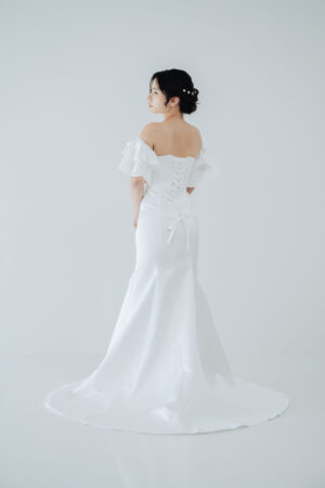 前撮りのロケーション撮影やフォトウェディングにもおすすめのドレスです。