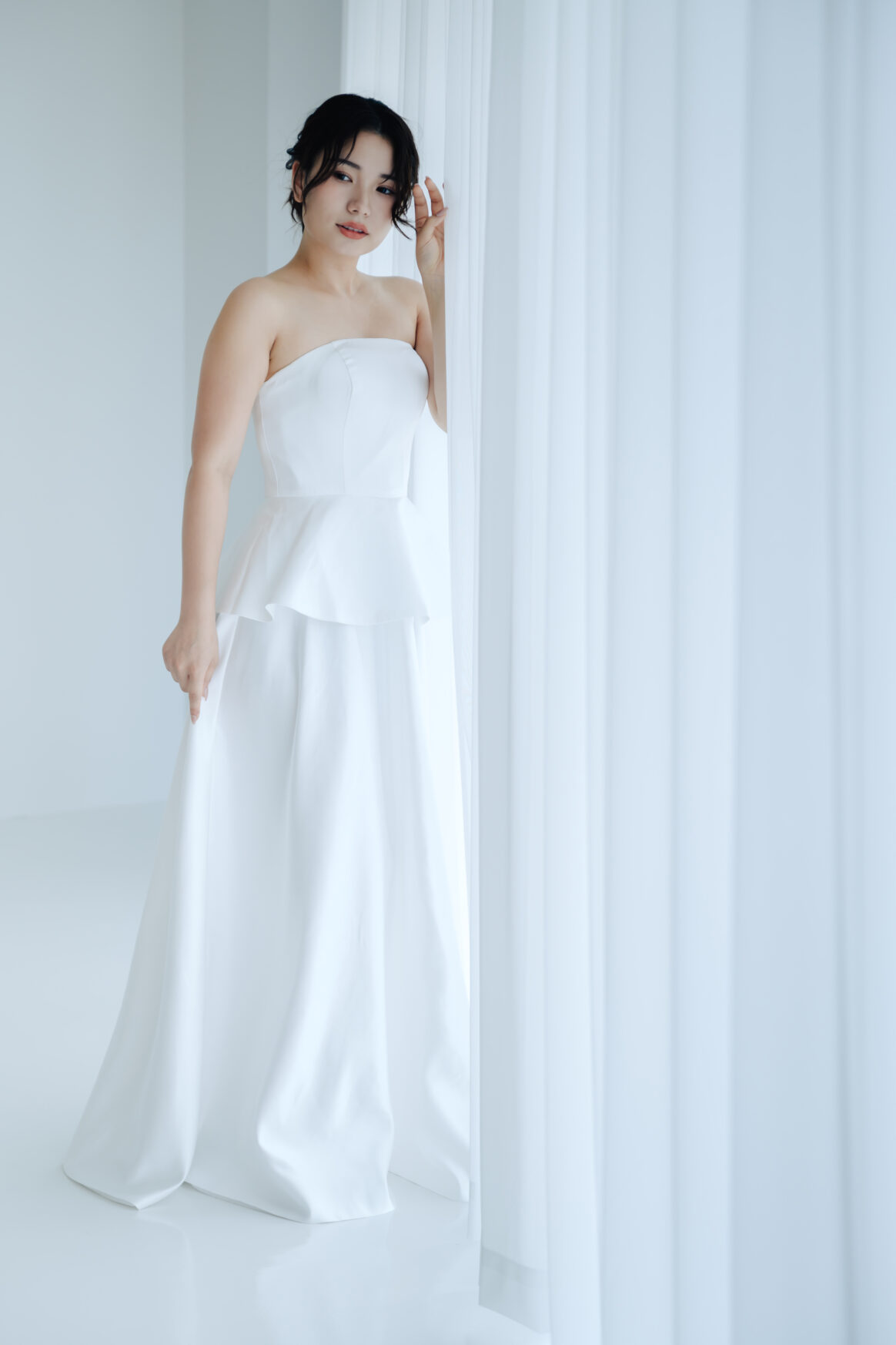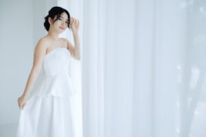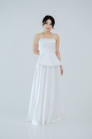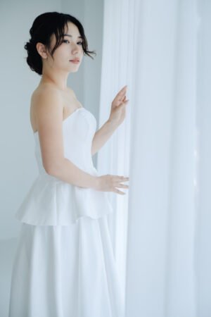 ドレスは上半身はすっきりとしたビスチェタイプ。