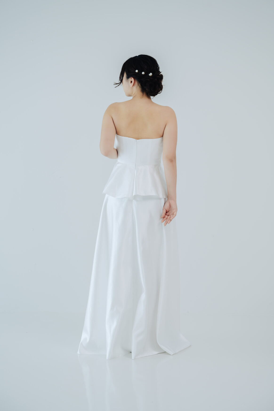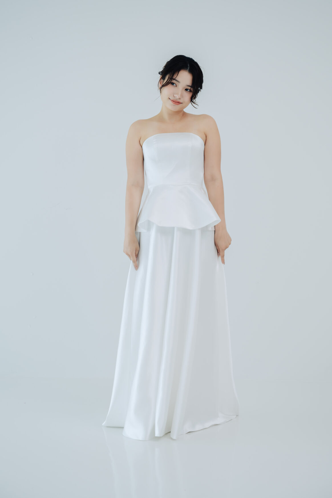 ドレスは上半身はすっきりとしたビスチェタイプ。