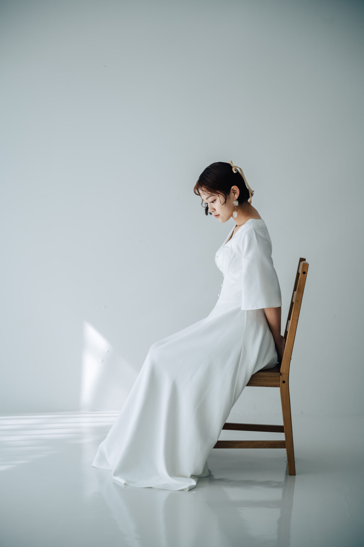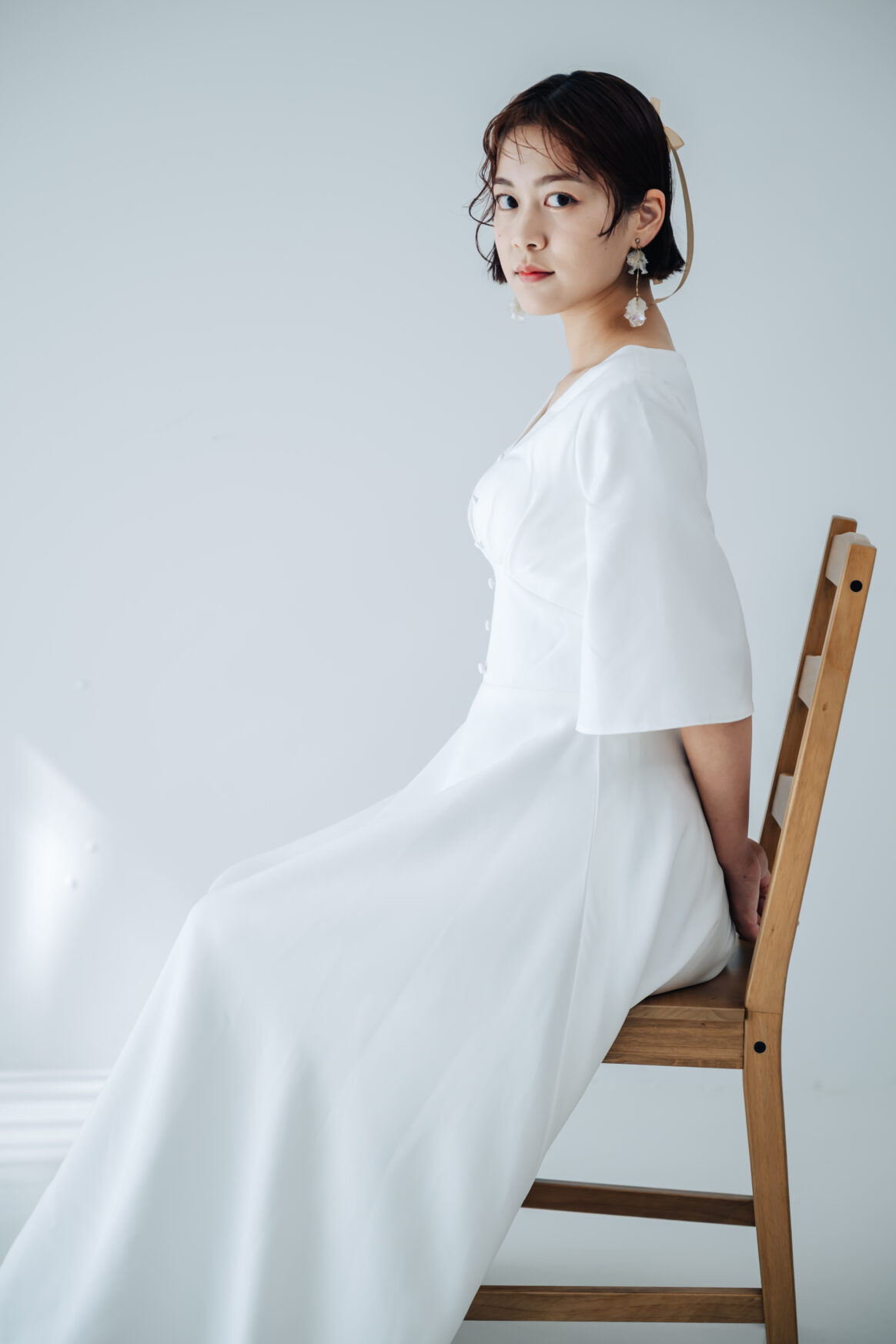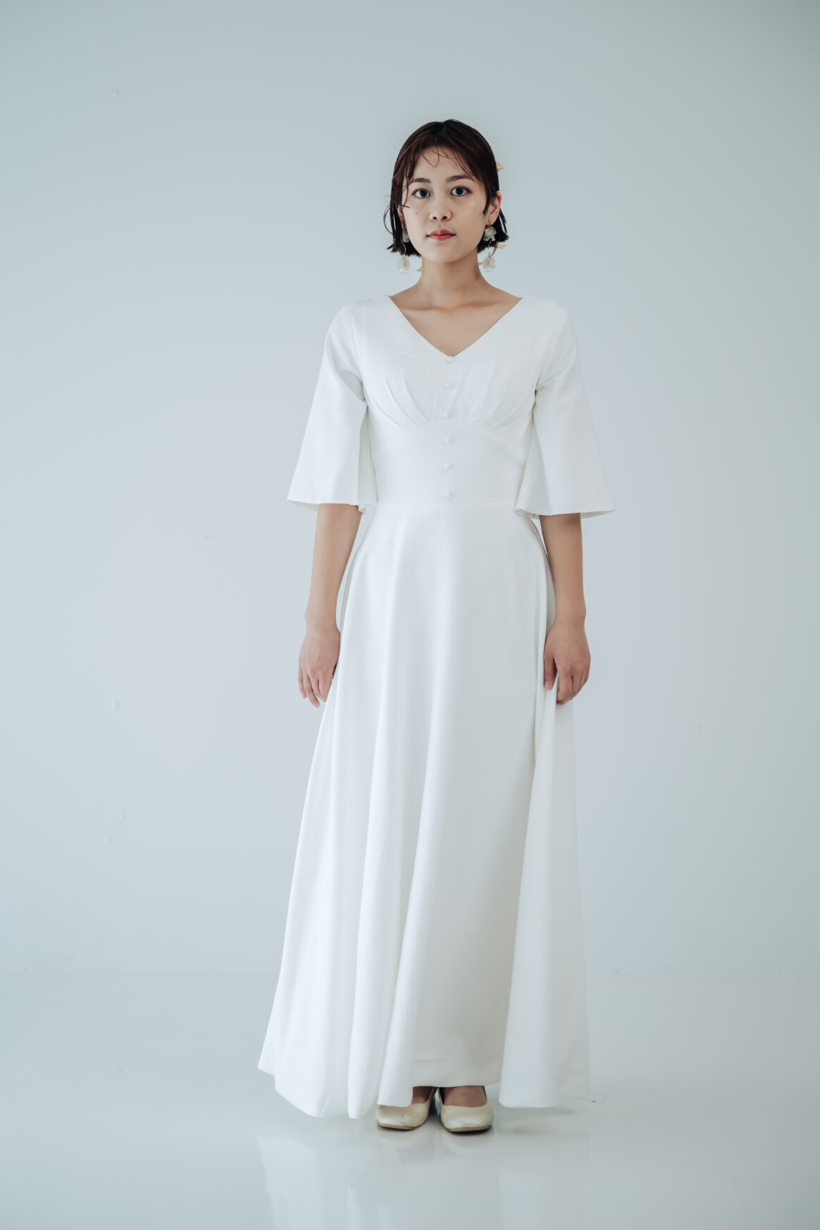 お洋服のようなワンピースタイプのウェディングドレスです。
