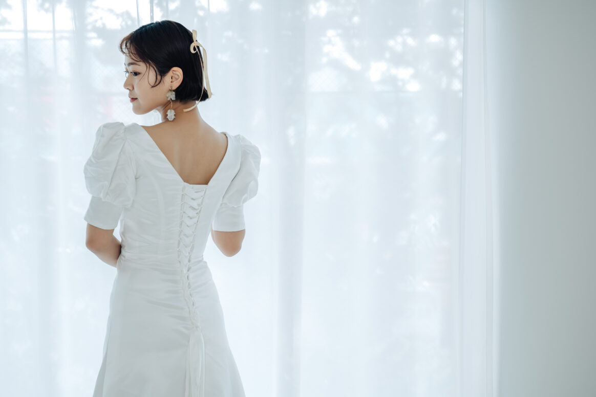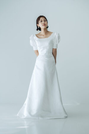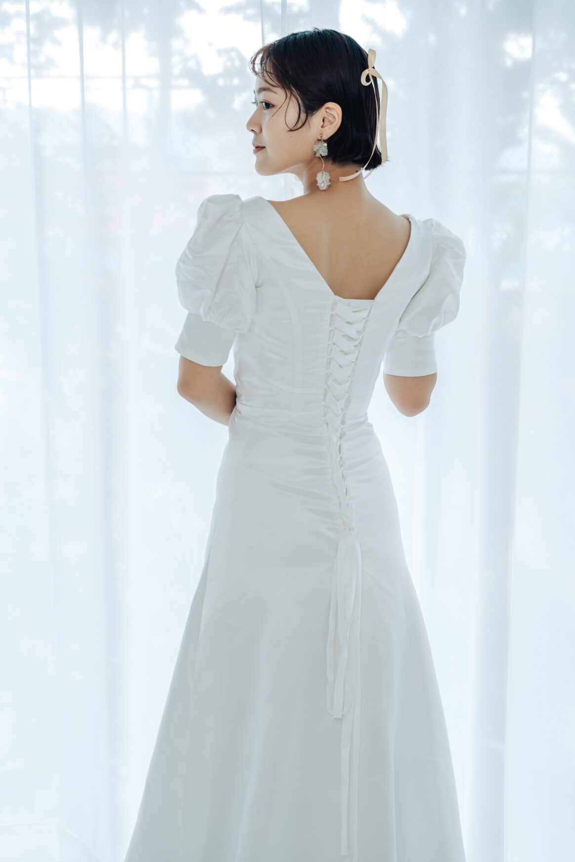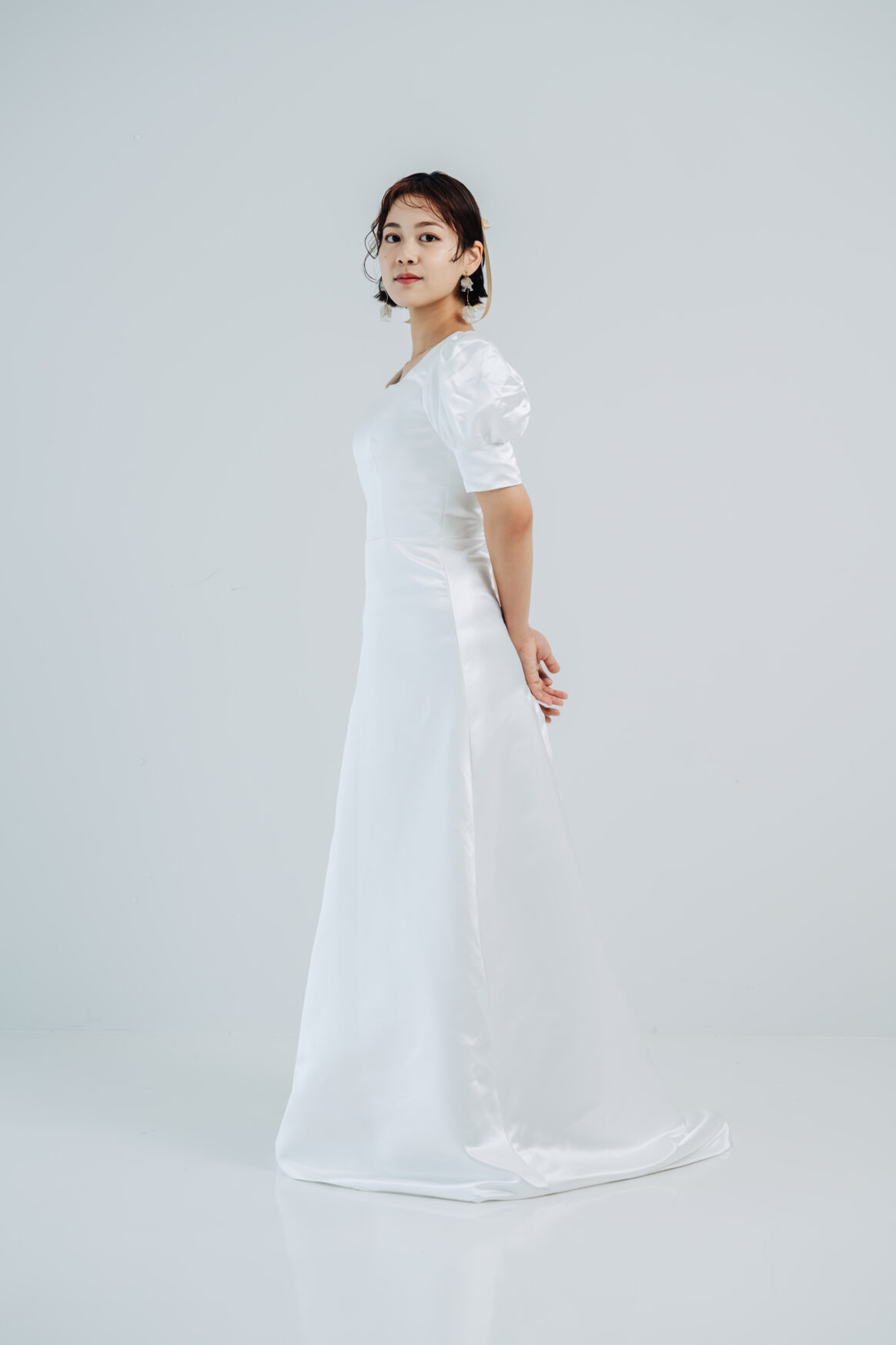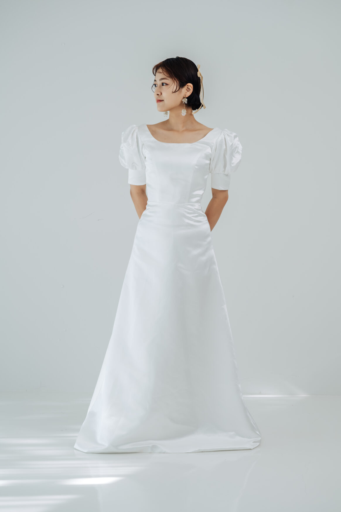 ぽわんとしたパフスリーブが可愛いシンプルドレス♪